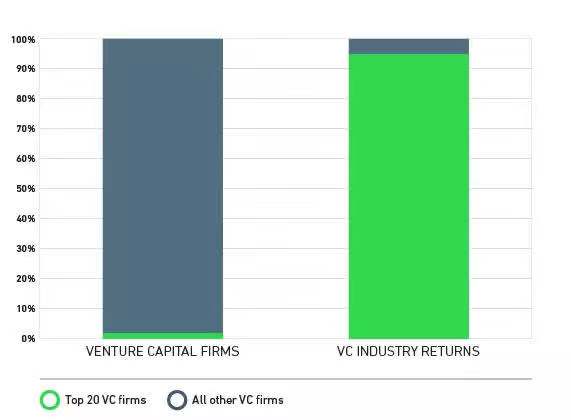 The top 20 firms (out of approximately 1,000 total VC firms) generate approximately 95% of the industry’s returns.