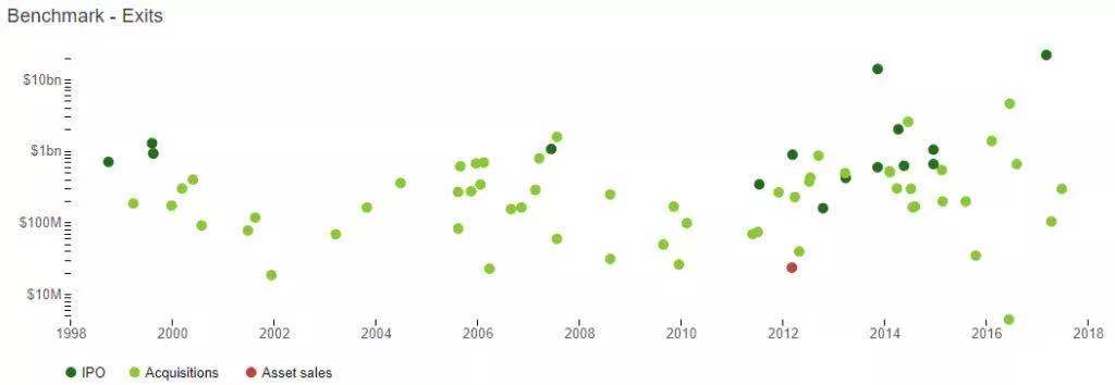 最難得的是,Benchmark能保持一個非常穩定的高產出節奏,截止2018年初,Benchmark在過去11年中產生了14個IPO項目。