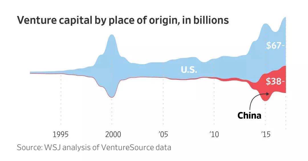 日本的文化相對保守,新加坡的市場太小,雖然兩國都是發達國家,但並不能形成良好的VC土壤。WSJ的這張圖非常形象的展示了中國VC市場的階段性。從投資的資金規模來看,中國創投市場的引爆點大約是在2013/14年左右,在此之前VC是一個非常小眾的行業。Pre-2015恰好是移動互聯網在中國得到快速普及的年份,同時也是移動互聯網很快遇到增長瓶頸的前序。